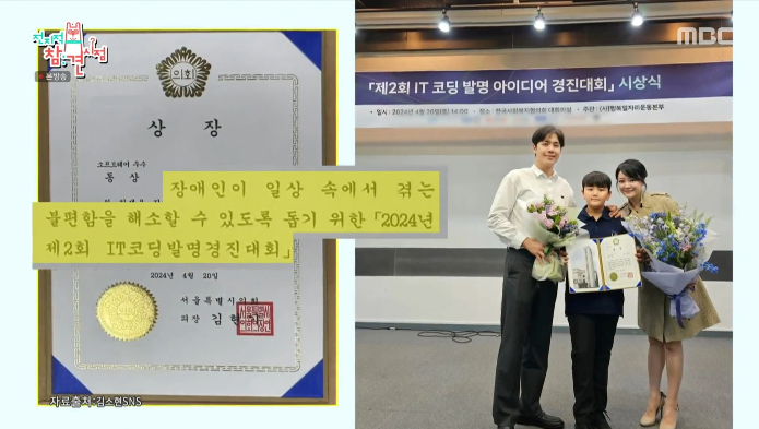 주안이는 이번에 장애인이 일상 속에서 겪는 불편함을 해소할 수 있도록 돕기 위한 제2회 IT 코딩 발명 아이디어 경진대회에서 상도 받았습니다. 그리고 2024에는 글로벌 청소년 환경 에세이 대회 은상, 국제청소년 한국유네스코유산 알리기 아이디어 대회 우수상, 한국과학기술지원단 과학프로젝트 대회 은상까지도 받았어요.